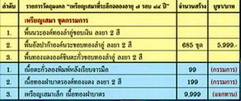 เหรียญเสมาชุดกรรมการ มี 1 ชุด ราคาชุดละ 7,000 บาท