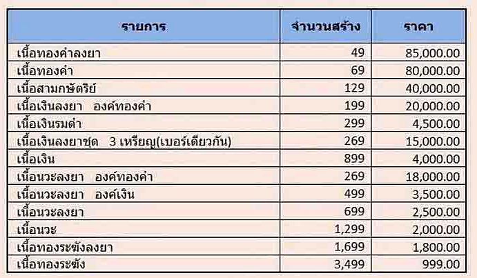 1.เนื้อทองคำ จำนวนสร้าง 69 เหรียญ มียอด 1 เหรียญ โทรถามครับ