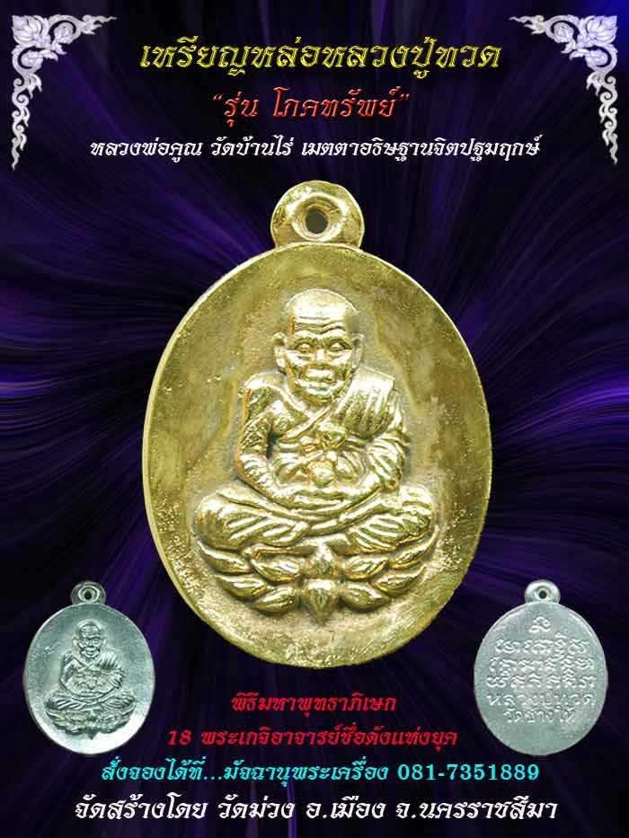 เหรียญหล่อหลวงปู่ทวด รุ่นโภคทรัพย์ ชุดเนื้อเงิน วัดม่วง จ. นครราชสีมา ปลุกเสกโดยหลวงพ่อคูณ
