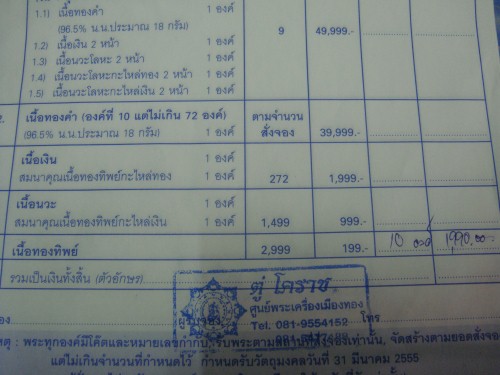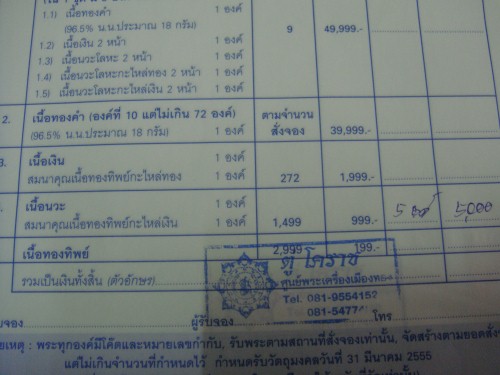 เนื้อนวะ 1 องค์ แถมเนื้อทองทิพย์กะไหล่เงิน 1 องค์ และ เนื้อทองทิพย์ 1 องค์ รวม 3 องค์ ราคา 1550 บาท
