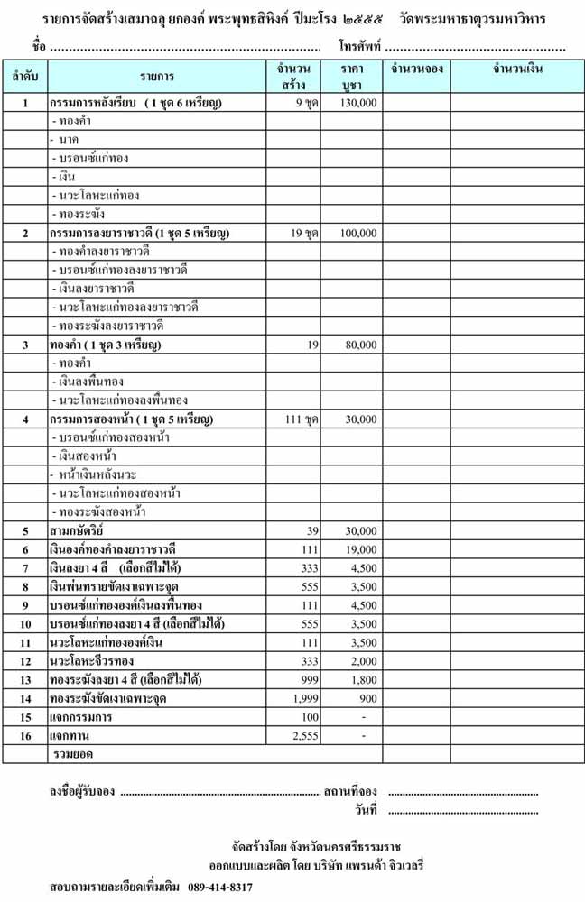 - การรับพระ จะทำการจัดส่งให้ทางไปรษณีย์ หลังได้รับพระจากศูนย์จองอีกครั้งหนึ่งโดยเร็วที่สุดเท่าที่จะเป็นไปได้ครับ