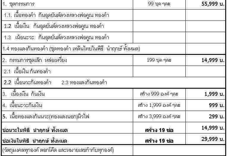 1.ช่อนวะ ในพิธี นำฤกษ์ ทั้งหมด ช่อละ 9 องค์ สร้าง 19 ช่อ มี 1 ช่อ 20,000 บาท