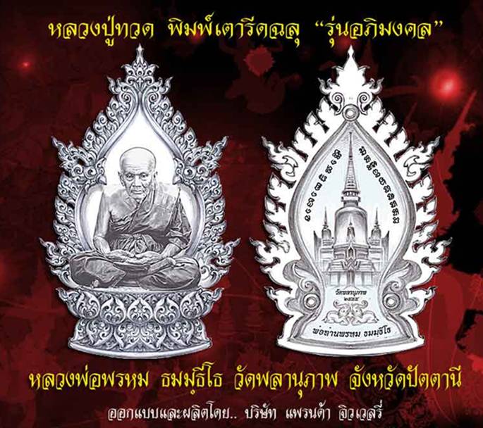 เปิดรับจองหลวงปู่ทวด เหยียบน้ำทะเลจืด รุ่นอภิมงคล หลวงพ่อพรหม วัดพลานุภาพ จ.ปัตตานี เป็นรูปแบบเตารีดฉลุ จัดสร้างโดยบริษัท แพรนด้าจิวเวลรี่ เป็นที่ทราบกันดีในวงการพระเครื่องในช่วงนี้ ถ้าเป็นบรษัทแพรนด้าจัดสร้าง จะได้รับความนิยมอย่างมากในเวลานี้