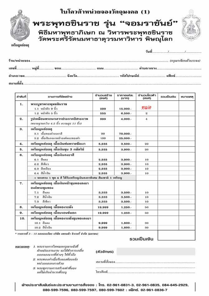 เปิดราคาจอง พระพุทธชินราช รุ่น จอมราชันย์ อุ๊ กรุงสยาม ผลงานแพรนด้าจิวเวลรี่