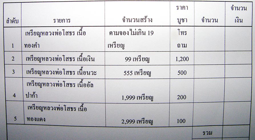 มีรายการและราคาจอง ดังต่อไปนี้ ในราคาวัดครับ