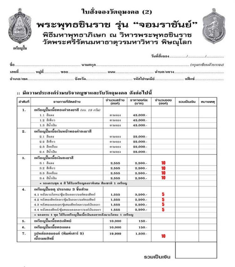 พระพุทธชินราช รุ่นจอมราชันย์ เปิดให้จอง ไม่มีราคาบวกค่ะ