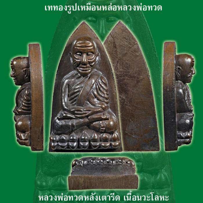 รายการที่ 2. ชุดหลวงพ่อทวดหลังเตารีดเนื้อนวโลหะและทองระฆัง (เนื้อละ 1 องค์ รวม 2 องค์) จองชุดละ 1,000 บาท มี 3 ชุด