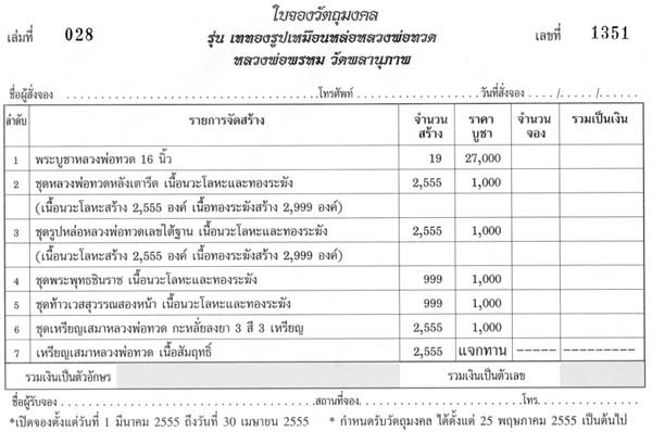 3.รายการที่ 4 ชุดพระพุทธชินราช เนื้อนวะโลหะและเนื้อทองระฆัง จอง 1,000 บาท มี 20 คู่