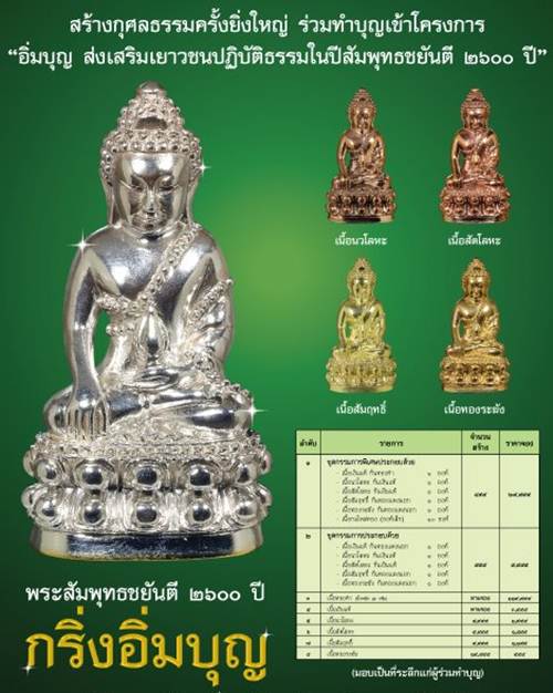 5.เนื้อนวะโลหะ ก้นเงิน สร้าง ๔,๙๙๙ องค์ ราคา ๑,๙๙๙ บาท มียอด 3 องค์