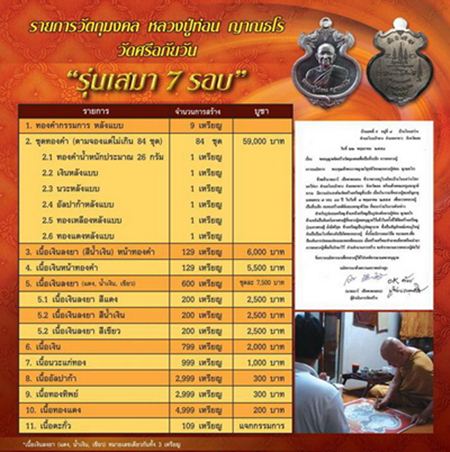 รายการจอง เหรียญเสมา 7 รอบ หลวงปู่ท่อน