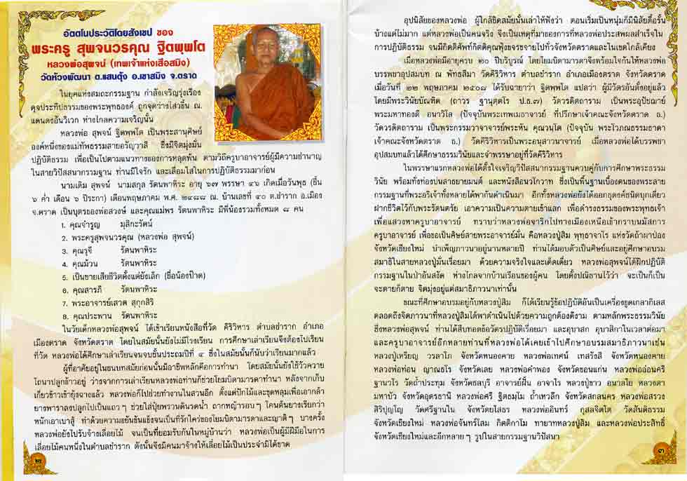 มนัส วัดทุ่งจันทร์ดำ จันทบุรี 4.หลวงพ่อนัส วัดอ่าวใหญ่ ตราด 5.พระอาจารย์ชาตรี วัดป่าโสภณ สกลนคร และ 6.หลวงพ่อสุพจน์