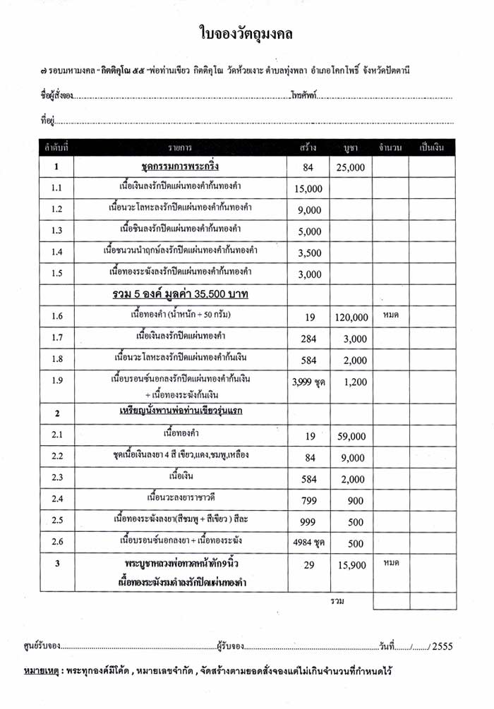 พี่ๆ เพื่อนๆ น้องๆ ทุกท่านสามารถจองได้ตามรายการที่ระบุในใบจองครับ