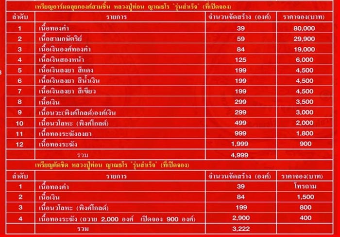 รายการที่เปิดรับจองมีดังนี้ครับ