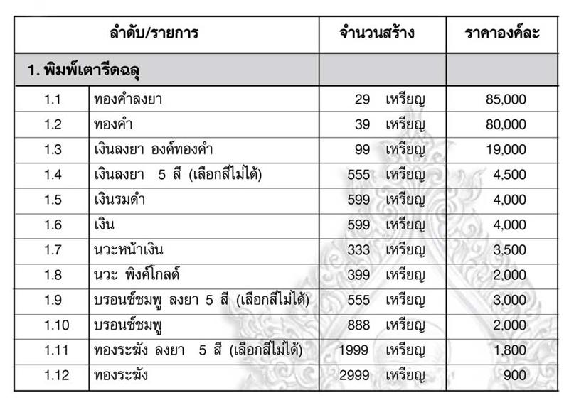 เปิดให้จองในราคาวัด มีรายการดังนี้