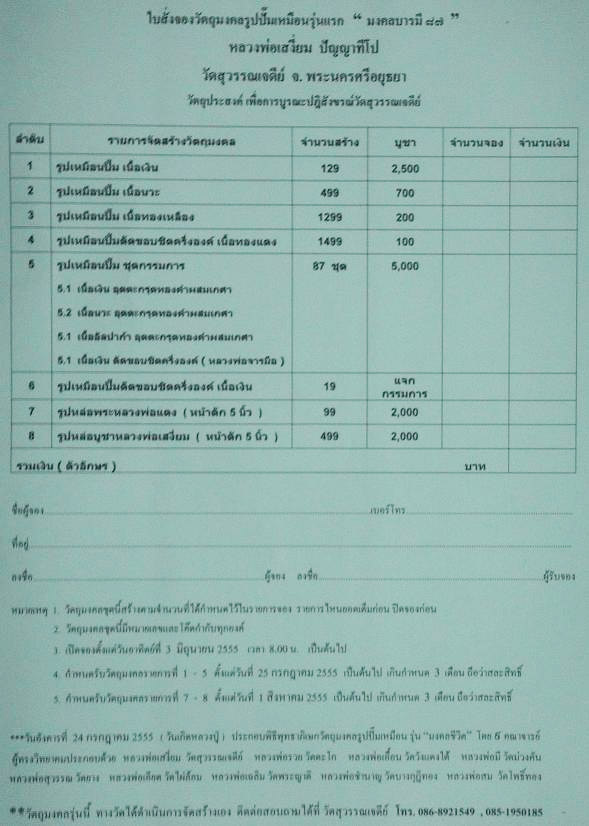 ไปรับพระเองที่วัด ไม่ต้องรอนาน รับพระวันที่ 25/7/55 แล้วจะจัดส่งให้ทันที