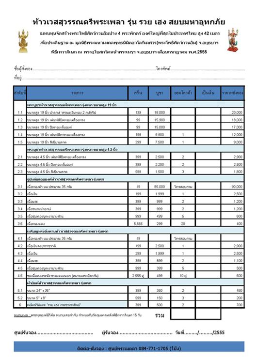 วัตถุประสงค์ : รายได้สมทบทุนสร้างเจ้าแม่กวนอิมปาง 4 พระพักตร์องค์ใหญ่ที่สุดในไทย จ.อยุธยาฯ