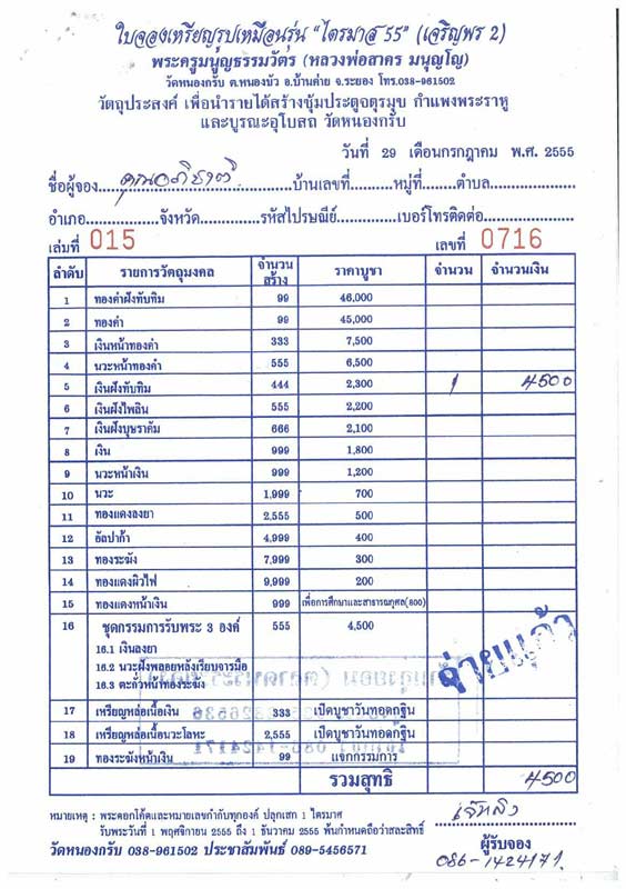 เป็นใบจองจากตลาดพระที่ระยอง ร้านเจ้หญิง ครับต้องการให้ส่งใบจองหรือส่งพระหลังออกพรรษาก็ได้ครับ