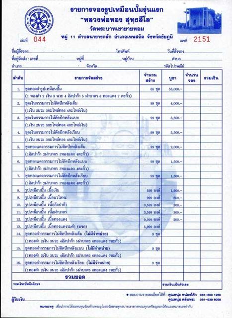 รายการที่ 1. ชุดทองคำรูปเหมือนปั๊ม จำนวนสร้าง 65 ชุด .....มี 1 ชุด .....ชุดละ 65,000 บาท