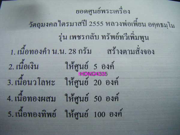 วัตถุมงคลไตรมาสปี 55 ((รูปเหมือนปั๊ม รุ่นเพชรกลับ ทรัพย์ทวีเพิ่มพูน )) หลวงพ่อเพี้ยน วัดเกริ่นกฐิน ลพบุรี