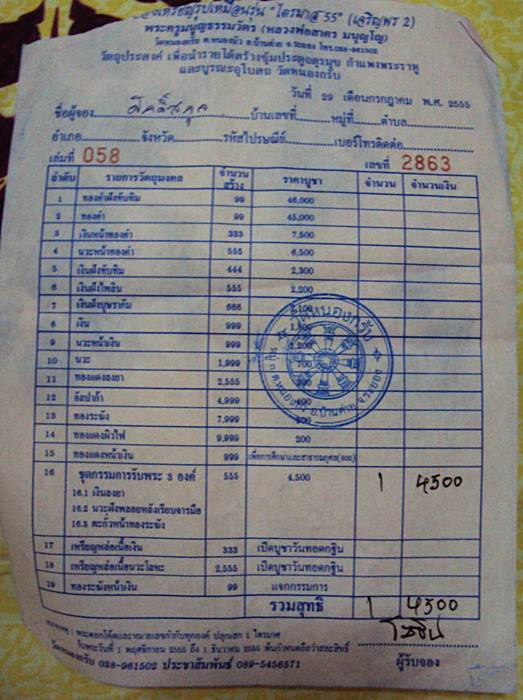 1. เนื้อตะกั่วหน้าทองระฆัง 1 เหรียญ = 3,000