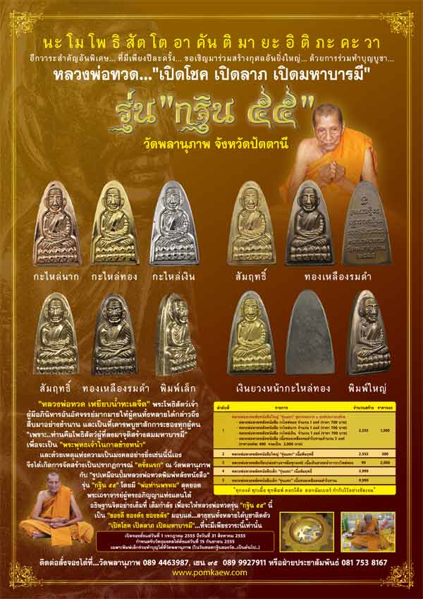 2. หลังหนังสือ รุ่นแรก เนื้อสัมฤทธิ์ สร้าง 2555 องค์ๆมี 10 องค์ๆละ 500 บาท