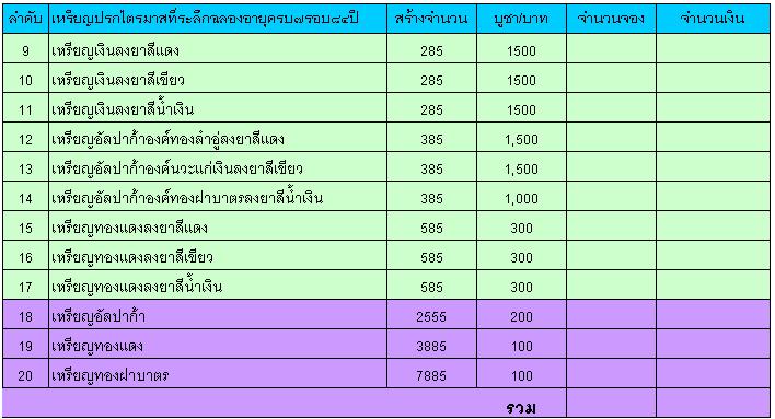 1.เนื้อเงินสร้าง385เหรียญ มียอดจอง 1 เหรียญ ราคา 1800 บาท