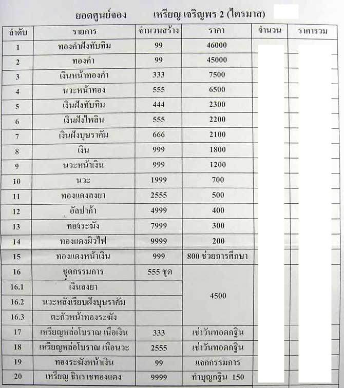 - นวะหน้าเงิน มี 4 เหรียญ ราคาเหรียญละ 1,900 บาท