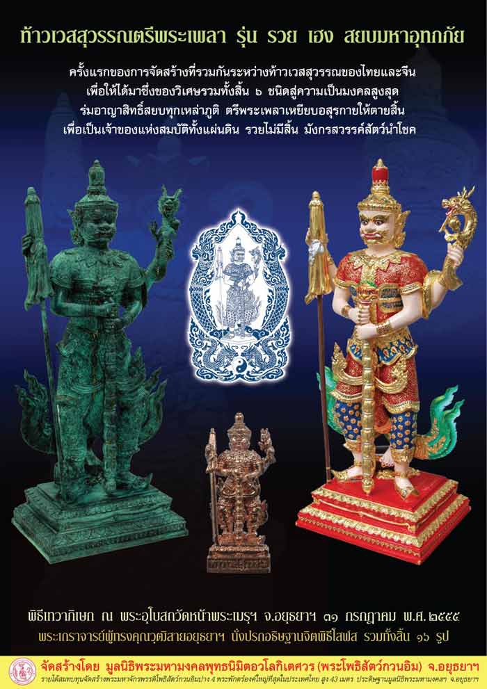 | หัวข้อกระทู้ : +++ พิธีโสฬสเทวาภิเษก !!! ท้าวเวสสุวรรณตรีพระเพลา รุ่น รวย เฮง สยบมหาอุทกภัย สวยงามเข้มขลัง +++ |
