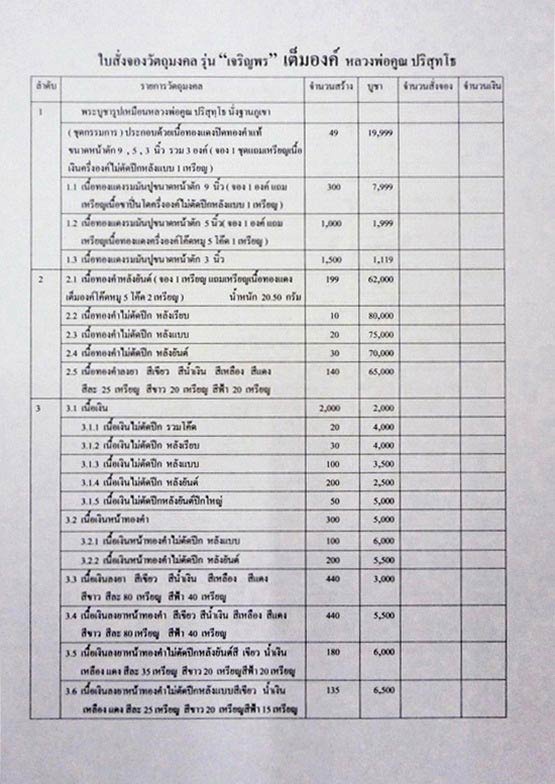 1.เหรียญเจริญพร 55 พิมพ์ครึ่งองค์ เนื้อทองคำ (ยังไม่ทราบหมายเลช)มียอด 1 เหรียญ เหรียญละ 100,000 บาท