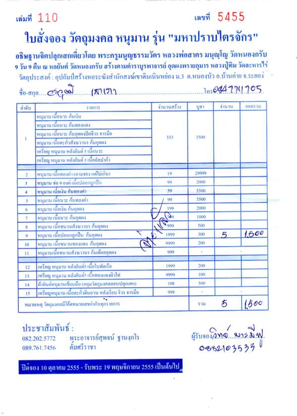หนุมานแช่น้ำว่าน มวลสารสุดยอดมากนะครับรุ่นนี้ จัดเต็มจริงๆครับ มีมาแบ่งกันในราคาจองเลยครับ จองจากศูนย์จองครับ ท่านได้รับพระแน่นอน รายการที่นำมาแบ่งดังนี้