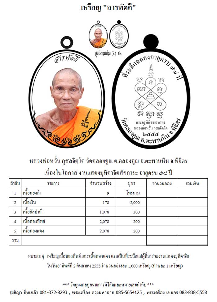 | หัวข้อกระทู้ : !!! เปิดจอง เหรียญสารพัดดี ที่ระลึกครบ 78ปี หลวงพ่อหวั่น วัดคลองคูณ !!! |
