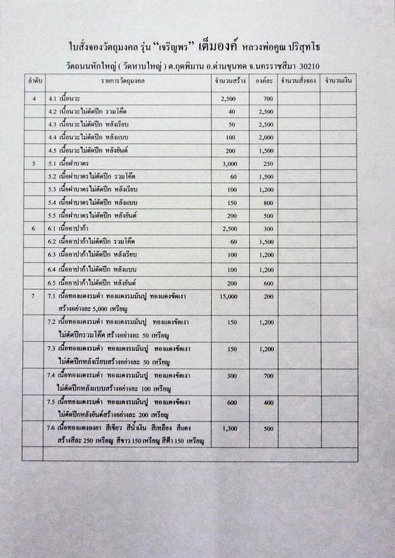 1.หลวงพ่อคูณ เจริญพร 55 พิมพ์เต็มองค์ เนื้อนวะโลหะ ราคาจอง 700 บาท มียอด 5 เหรียญ