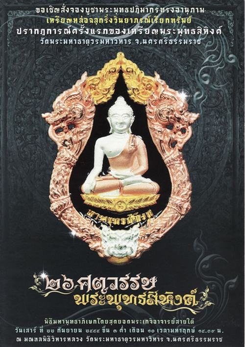 ขอเชิญสั่งจองบูชาพระพุทธปฏิมากรทรงอานุภาพ เหรียญหล่อฉลุกริ่งวินยาภรณ์เรียกทรัพย์ ปรากฏการณ์ครั้งแรกของเหรียญพุทธสิหิงค์ วัดมหาธาตุวรมหาวิหาร จ.นครศรีธรรมราช