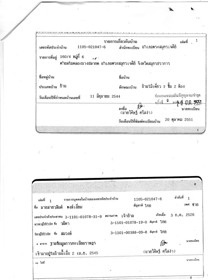 ขอยื่นทะเบียนบ้านบ้านไว้เป็นหลักฐาน มีปัญหาจะได้ตามถูกครับ ^_^ |