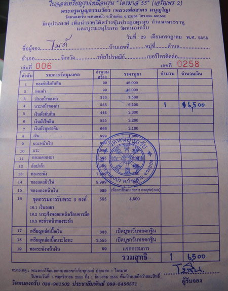 (จัดส่งใบให้ฟรีครับ...นำใบจองรไปรับพระเองนะครับ)