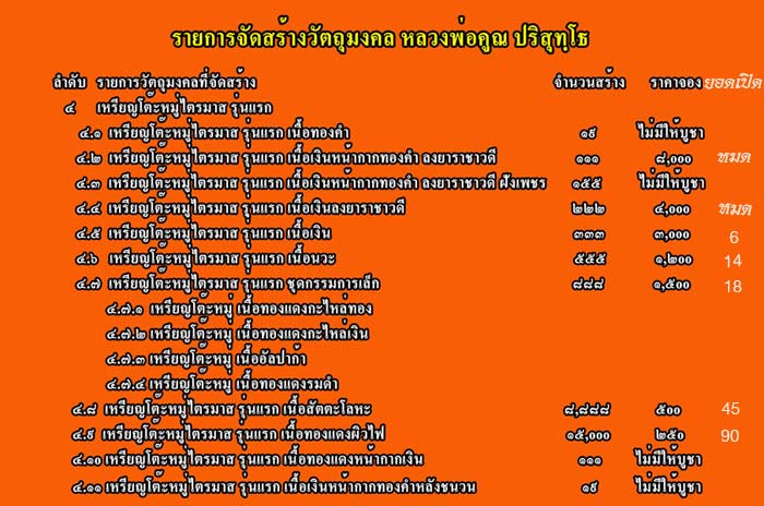 | หัวข้อกระทู้ : >>เปิดจอง เหรียญโต๊ะหมู่ไตรมาส รุ่นแรก บารมีบุญ คูณ ๕๕ << |