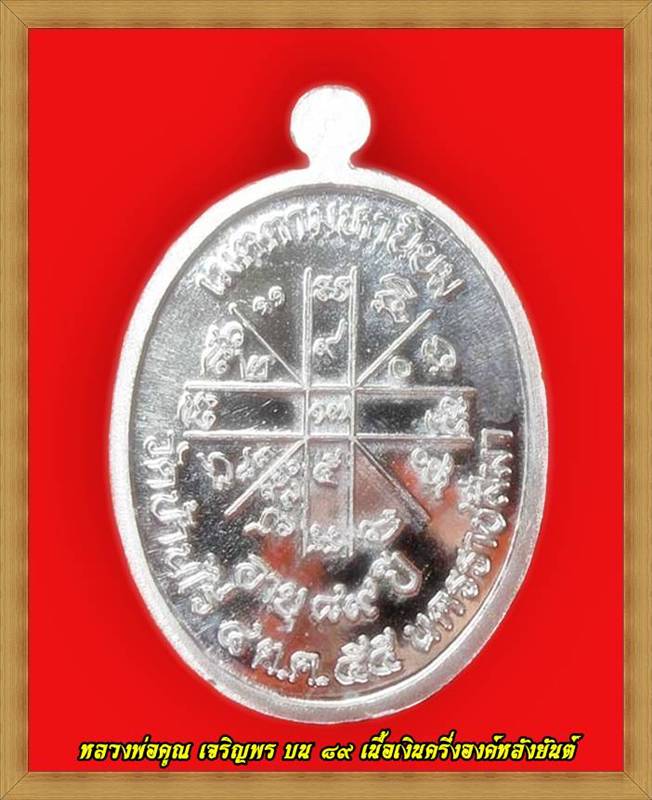 หลวงพ่อคูณ เจริญพร บน ๘๙ เนื้อเงินครึ่งองค์หลังยันต์