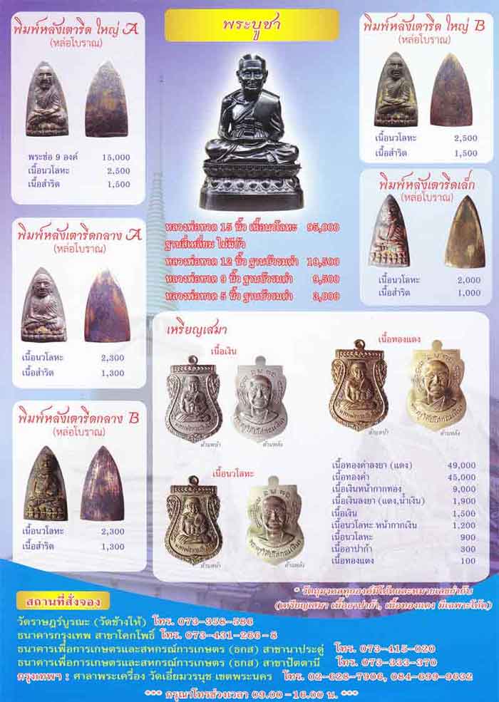 1.พิมพ์หลังเตารีดใหญ่ A (หล่อโบราณ) เนื้อสัมริด องค์ละ 2300 บาท มี่ 5 องค์