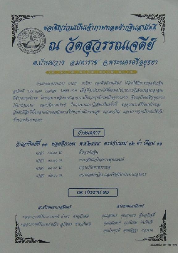 เชิญร่วมเป็นเจ้าภาพกฐินประจำปี 55 วัดสุวรรณเจดีย์