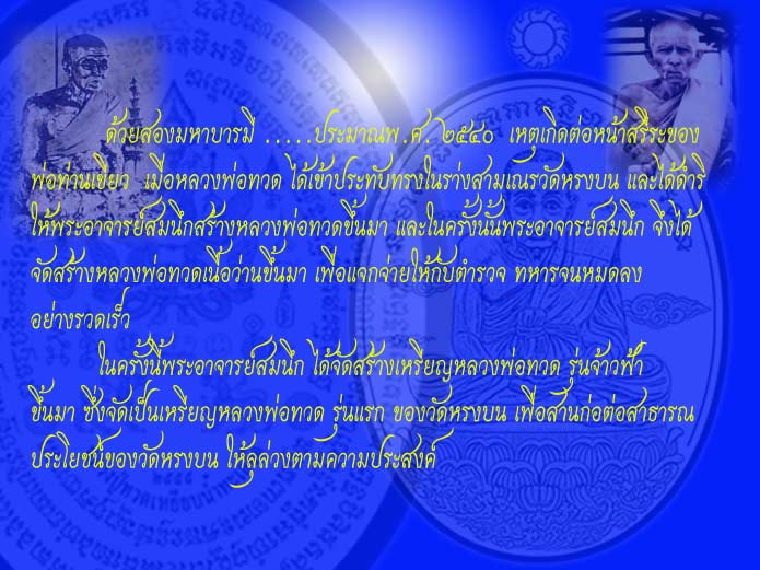 ในเหรียญหลวงปู่ทวด เหยียบน้ำทะเลจืด " รุ่นจ้าวฟ้า มหาสมุทร "