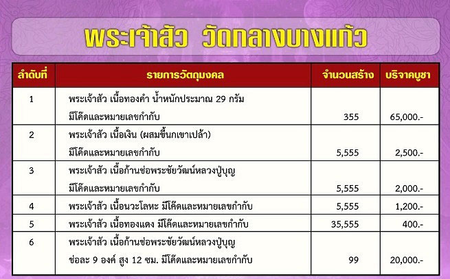 | หัวข้อกระทู้ : ...( ด่วน ) เจ้าสัว 3 วัดกลางบางแก้ว จ.นครปฐม มี 3 ชุด เนื้อเงิน กับ ทองแดง ครับ ... |
