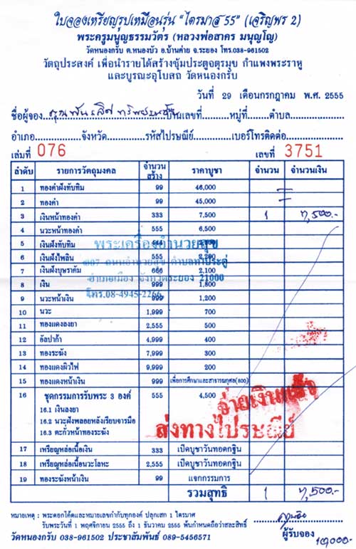 จองจากศูนย์พระเครื่องอำนวยสุข(ครูน้อย)โดยตรงครับผม เดือนหน้ารับพระ...เร่งจัดส่งให้ทันทีครับ