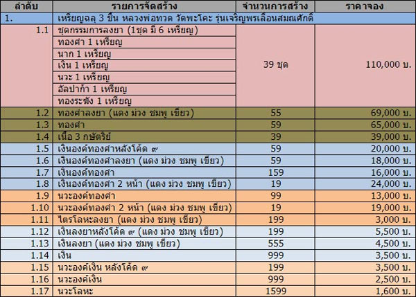 1.เนื้อเงินองค์ทองคำลงยา(เลือกสีไม่ได้) มียอด 1 เหรียญ เหรียญละ 22,000 บาท