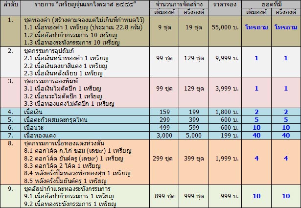 ราคาจอง!! ทุกรายการ จองได้ตามใบรายการที่ลงไว้
