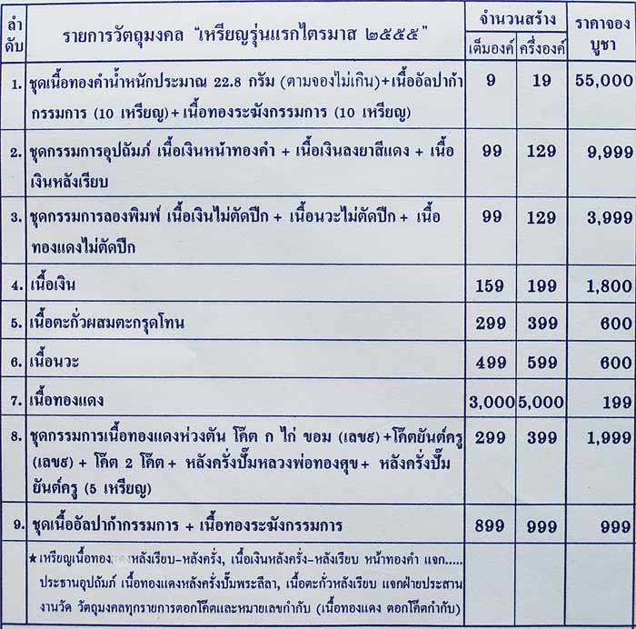 รายการสั่งจอง "เหรียญรุ่นแรก หลวงพ่อแก้ว ไตรมาส ๒๕๕๕" จ.เพชรบุรี