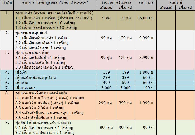 7. เนื้อทองแดง : พิมพ์ละ 40 เหรียญ