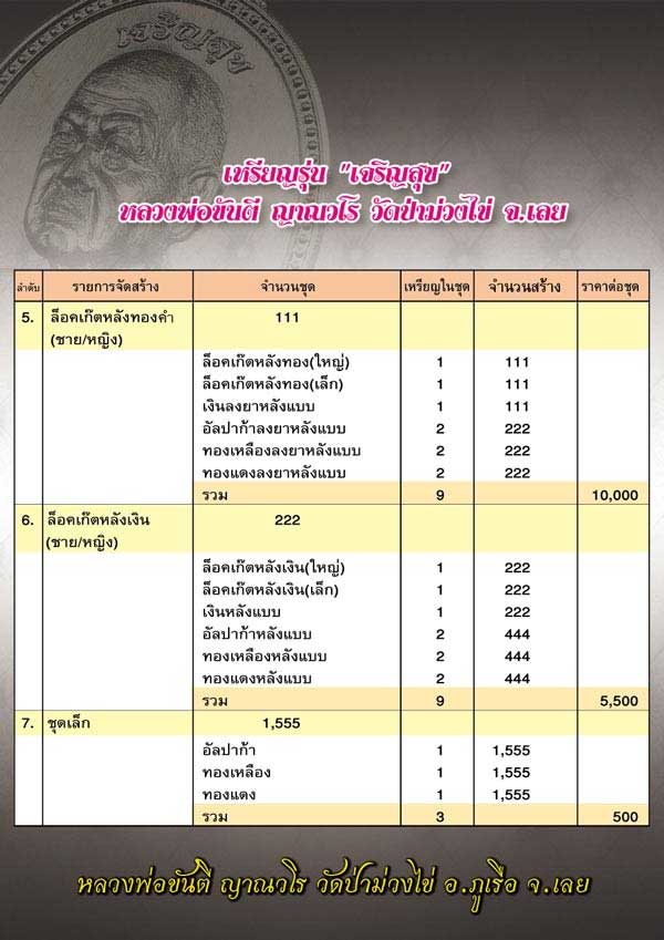 รายการที่ 7.ชุดเล็ก.............................. มียอด 5 ชุด ราคา ชุดล่ะ 700 บาท