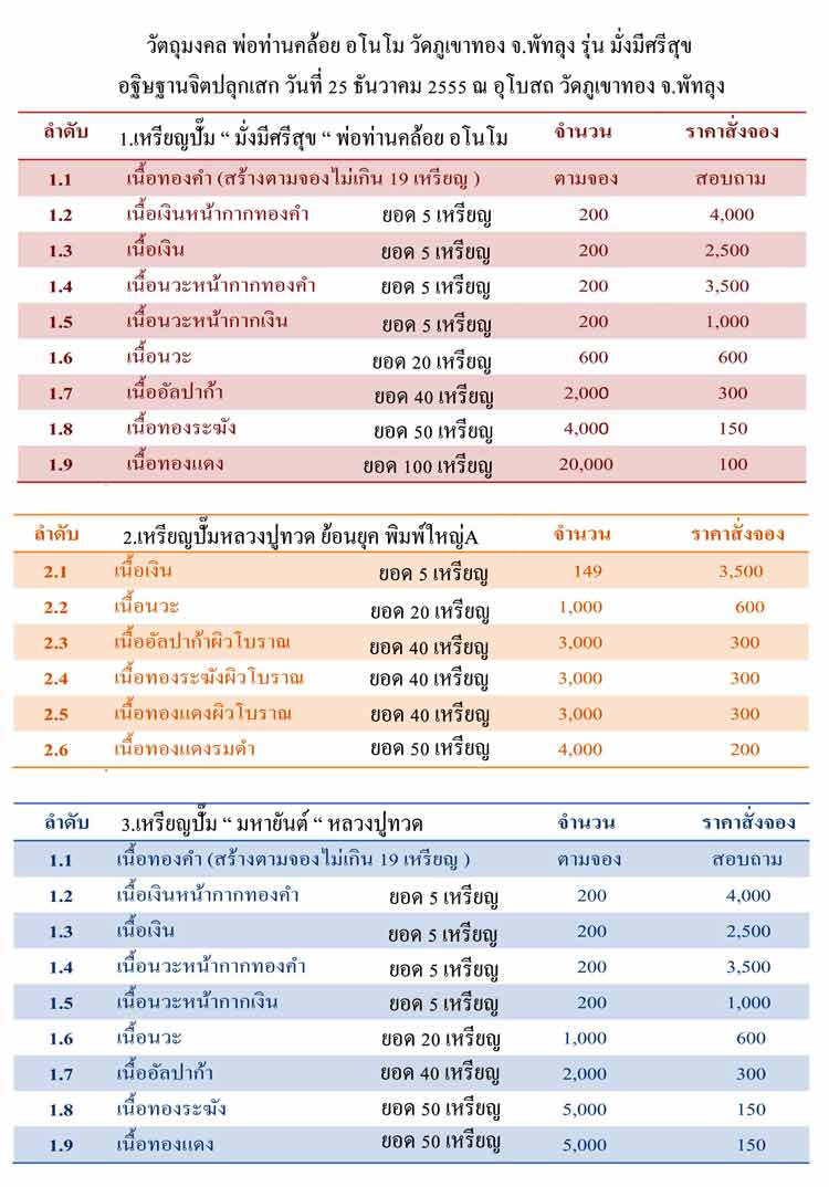 เปิดจองวัตถุมงคล " รุ่น มั่ง มี ศรี สุข "และวัตถุมงคลพ่อท่านคล้อย อโนโม หลายรายการค่ะ