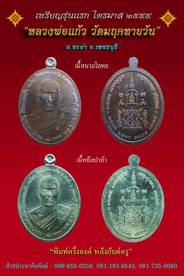 รายการสั่งจอง "เหรียญรุ่นแรก หลวงพ่อแก้ว ไตรมาส ๒๕๕๕" จ.เพชรบุรี