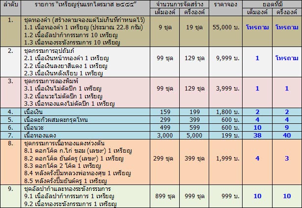 ราคาจอง!! ทุกรายการ จองได้ตามใบรายการที่ลงไว้
